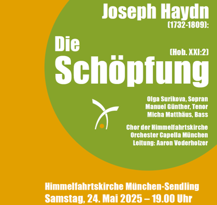 Zeige grösseres Bild Haydn | Die Schöpfung 24.05.2025, 19:00 Uhr Himmelfahrtskirche, München Leitung: Aaron Voderholzer MORE INFO Von holdekunst|2025-05-03T12:27:24+02:0024. Mai 2025|Konzert / concert|0 Kommentare